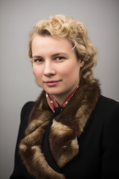 Dar vienas nuotraukos spalvinimo pavyzdys. Šį kartą su veidų atryškinimu pasitelkiant dirbtinį intelektą. Pamačiusi šią nuotrauką mano motutė prisiminė kokios spalvos rūbeliais buvo aprengta mano sesutė, tad nuotraukos spalvinimas bei restauravimas neprailgo. Taip pat pašviesinau nuotrauką ir sumažinau kontrastą, kad atsiskleistų veido bruožai, kurie buvo paslėpti šešėlio.